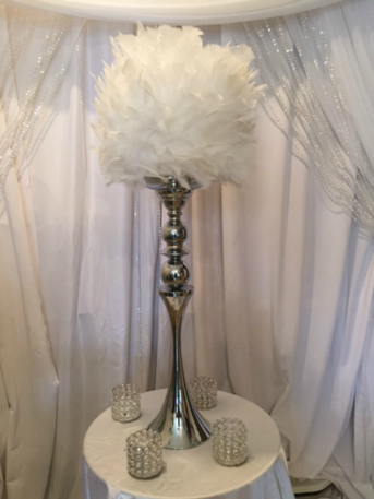 It costs less to rent a centerpiece than to buy one. Use our rental service and there's no running around to craft stores searching for just the right look. Our complete centerpieces include Feathers, Crystals, Candelabras, Florals and other arrangements for your wedding, sweet 16, briday/baby shower, corporate or special event. Customization is also available! Contact us for a quote and consultation or (718) 841-7279